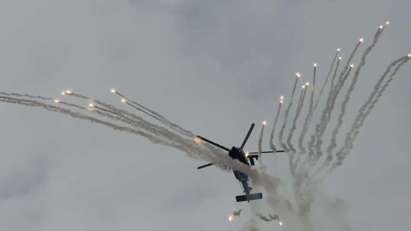 在开幕式飞行表演环节,直10“空中格斗”精彩上演,干扰弹绚丽夺目;直20T悬停回转、后退上升、垂直俯冲,尽显机动灵活;直20、直10组成的空中快速营救编队,开展实战化演练;AG600飞机也首次飞临津门参加直博会,与加装了消防水炮的AC311A直升机,开展固定翼飞机与直升机协同表演。