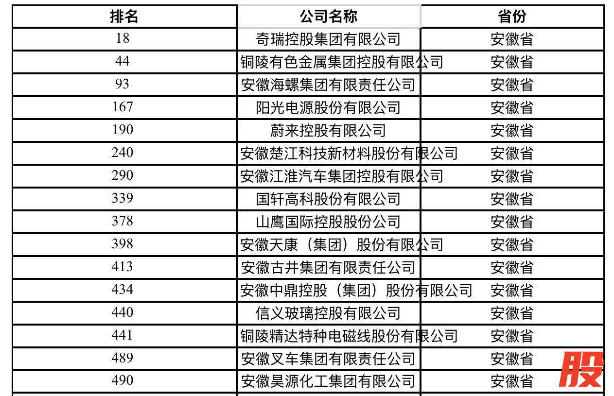 这其中,安徽共有16家企业入围500强榜单。其中奇瑞控股集团有限公司、铜陵有色金属集团控股有限公司、安徽海螺集团有限责任公司分列第18、第44、第93位。
